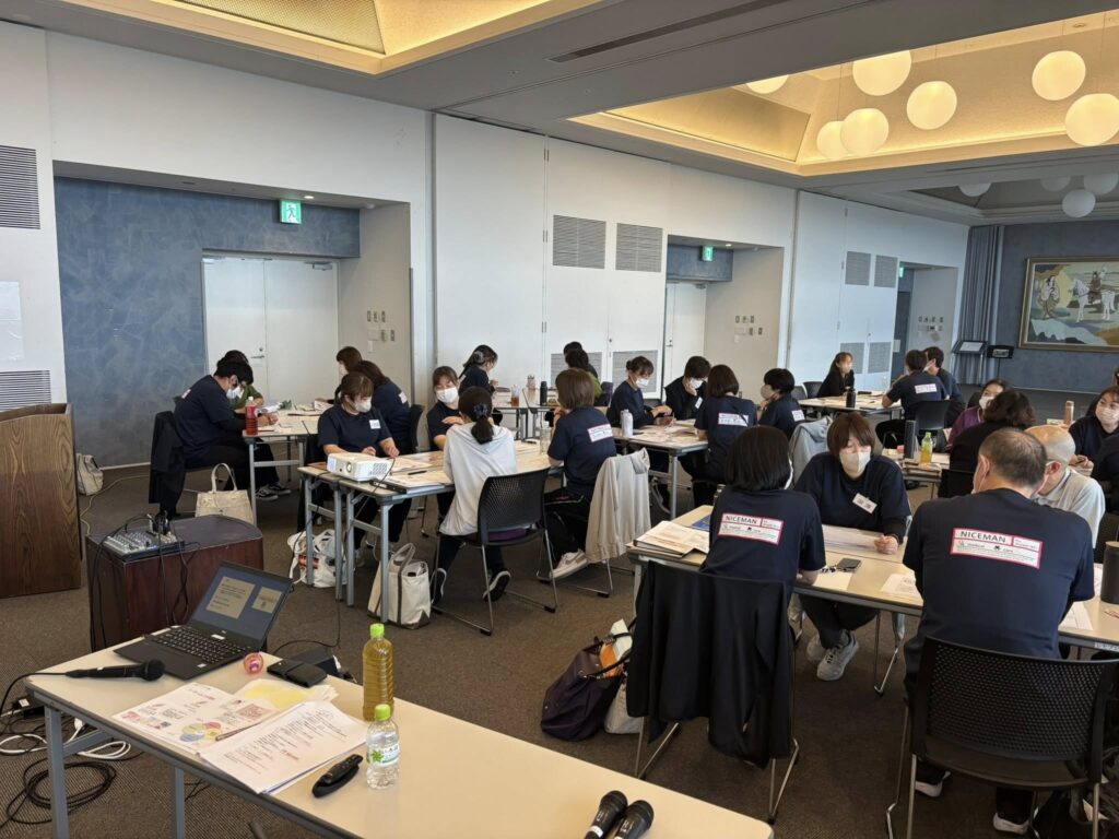 同じ法人で事業所が違う管理者たち27人が集まって2時間の研修をしました。